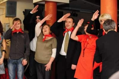 Праздник в стиле 80-х. Много декораций, костюмов, атрибутики... Заказчик - компания "Белатмит" Фотограф - Александр Гребенев.
