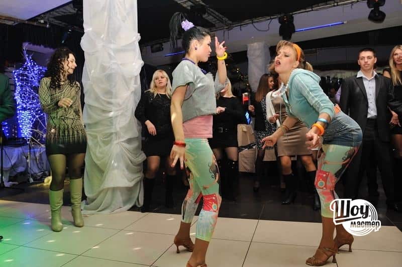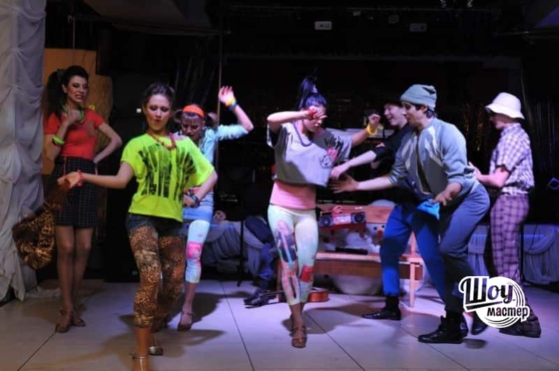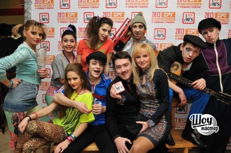 Отличный праздник, в стиле 90-х! Мы постарались воссоздать эпоху тех лет, где были в моде "малиновые пиджаки", лосины, рэкет, разборки и конечно же танцплощадки!!! В этом нам помогли очень классный балет "Black Cats" и легендарное шоу Бари Алибасова "НА-НА"!!!